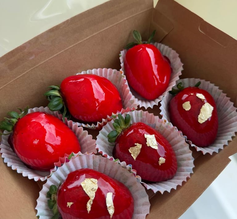 Fresas frescas con brigadeiro y caramelo crujiente.